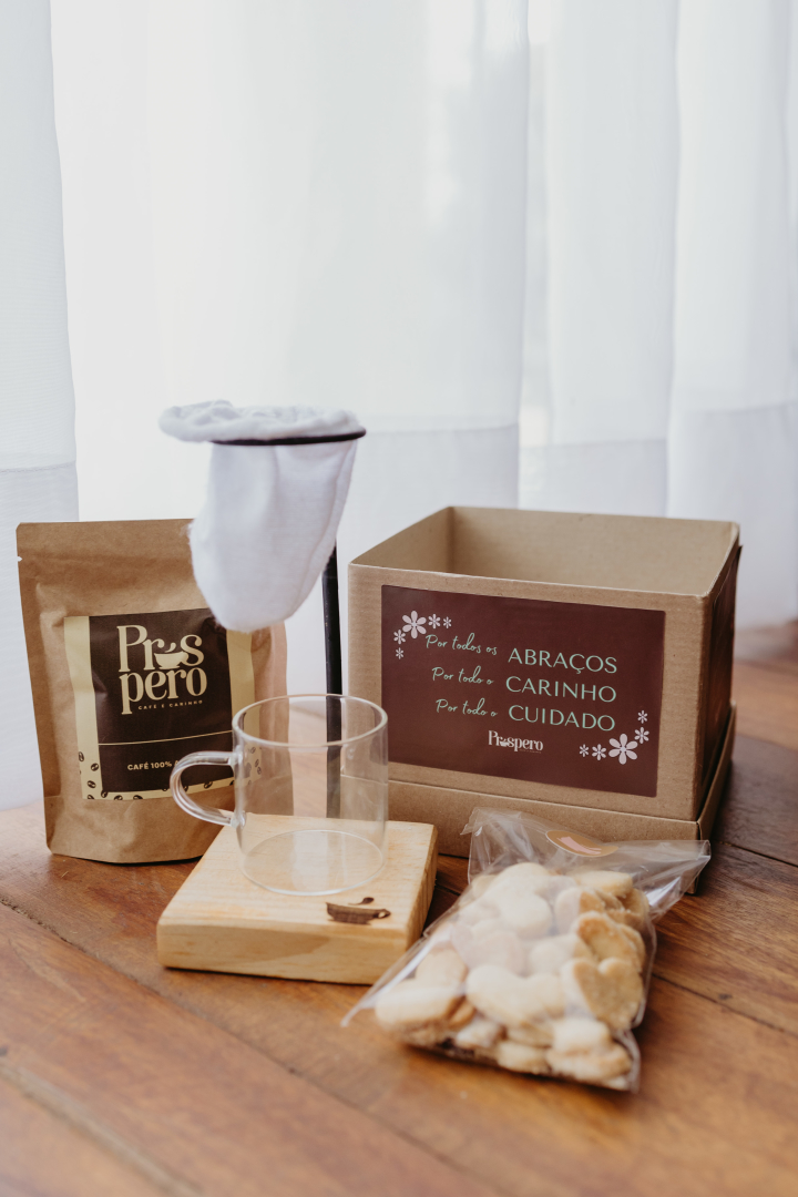 Café Próspero 90g coador individual biscoitos amanteigados caixa P - Sugestão: acrescente vaso com flores, uma xícara, cápsulas de amor para um kit ainda mais lindo e delicioso